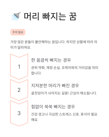 🚿 머리빠지는꿈 해몽, 자신감 하락인가 신분 변화인가?