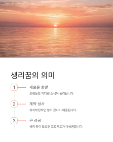 - 생리꿈: 새로운 계약 성사나 오랫동안 바랐던 소원이 이루어지는 시작점.