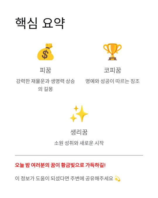 혹시 더 궁금한 꿈 내용이 있다면 댓글로 남겨주세요! 제가 시원하게 풀이해 드릴게요.