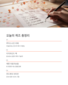 합리적인 소비를 돕는 보험 정보부터 활력을 충전해 주는 비타민 정보까지, 오늘 캐시워크는 정말 알찬 지식들로 가득 차 있네요. 저도 정답을 정리하면서 몰랐던 꿀팁들을 많이 알게 되었어요. 자, 오래 기다리셨습니다! 이제 이 모든 문제의 정답을 한눈에 보러 가실 차례예요.
