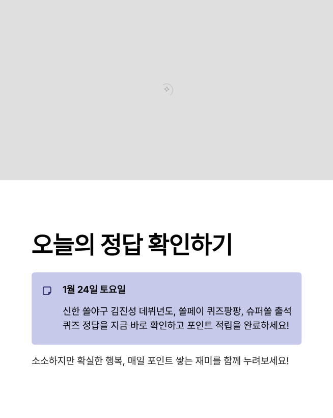 1월 24일 토요일, 신한 쏠야구 김진성 선수 데뷔년도 문제부터 퀴즈팡팡, 슈퍼쏠 출석퀴즈까지 모든 정답 정보를 정리했습니다. 마이신한포인트를 최대 1만 점까지 챙길 수 있는 이번 기회, 과연 오늘의 핵심 정답은 무엇일까요?