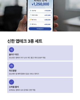 앱테크 초보자분들을 위해 각 퀴즈가 어디에 숨어있는지 참여 경로를 간단히 설명해 드릴게요. 우선 쏠야구 퀴즈는 신한 SOL뱅크 앱의 하단 '쏠야구' 메뉴에서 찾으실 수 있어요. 여기서 정답을 제출하면 최대 100P, 이벤트 시에는 200P까지도 받을 수 있죠. 퀴즈팡팡은 신한 SOL페이 앱의 '혜택' 탭에 위치해 있고, 슈퍼쏠 출석퀴즈는 신한 슈퍼SOL 앱의 '포인트 모으기' 섹션에서 바로 확인이 가능합니다.