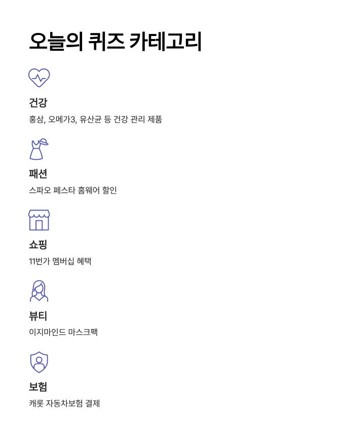 한국야쿠르트 홍삼K, 스파오 페스타, 종근당건강 오메가3 등 오늘 출제된 모든 퀴즈의 정답을 완벽 정리했습니다.